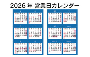 営業日カレンダー(令和8年)を更新いたしました。 ▶▶▶