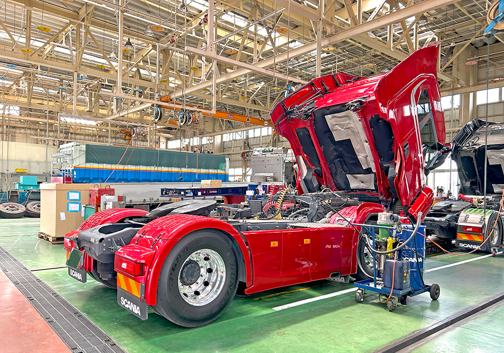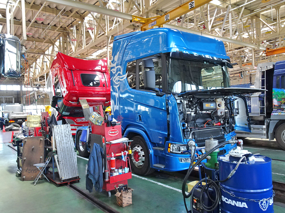 現在、整備工場東海は、SCANIA車両の入庫がとぎれることのない東海地区屈指のSCANIAディーラーとして活躍しています。