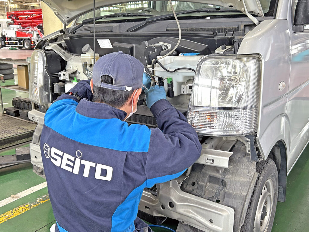セイトー工場では、乗用車から大型車両まで、幅広い整備に対応できる、確かな技術と信頼のサービスを提供します。